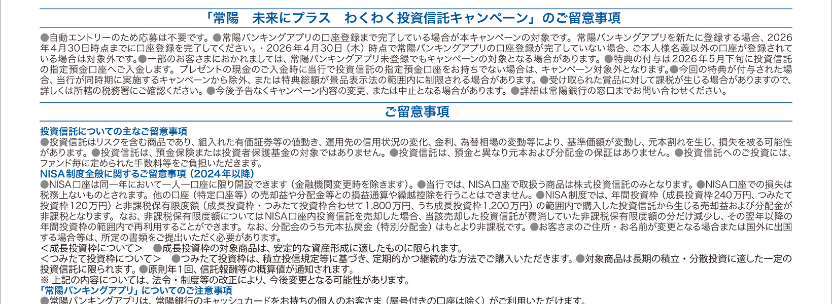常陽 未来にプラス わくわく投資信託キャンペーン