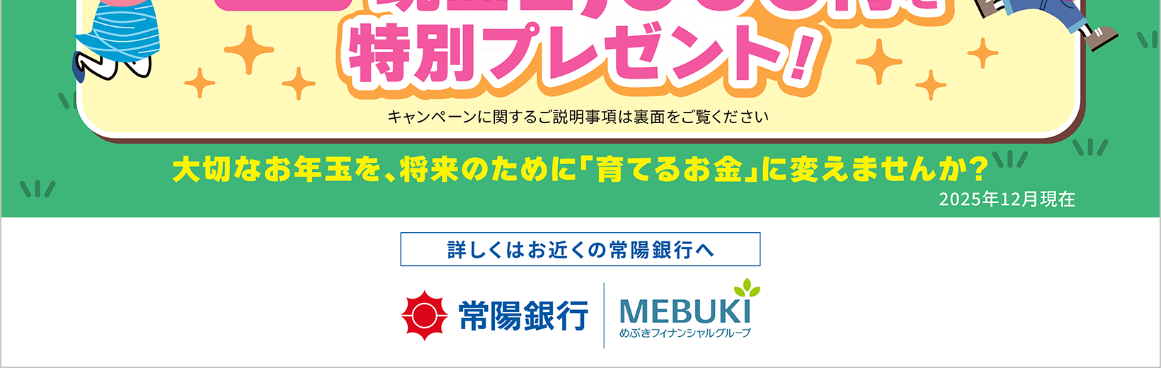 - 常陽銀行で口座をお持ちの満15歳未満のお子さまが対象です。