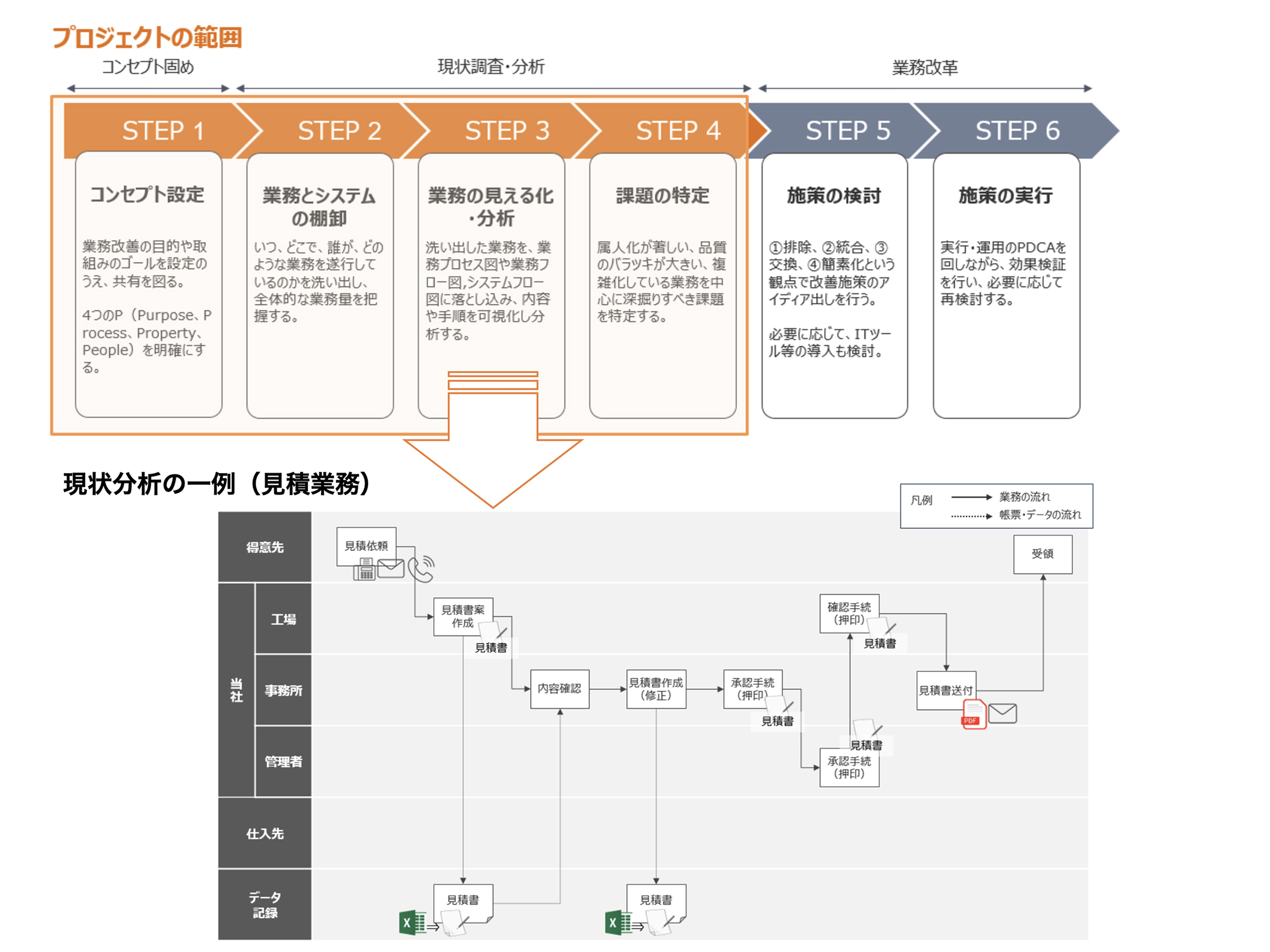 海野氏 : 常陽銀行さんのIT・デジタル化に向けた現状分析と業務効率化支援が大きな助けとなっています。現場の作業や事務フローを可視化し、改善点を具体的に指摘していただいたことで、生産性向上の道筋が見えました。金融支援だけでなく、こうしたコンサルティングが社員の意識改革にもつながっており、DX推進の伴走パートナーとして心強く感じています。