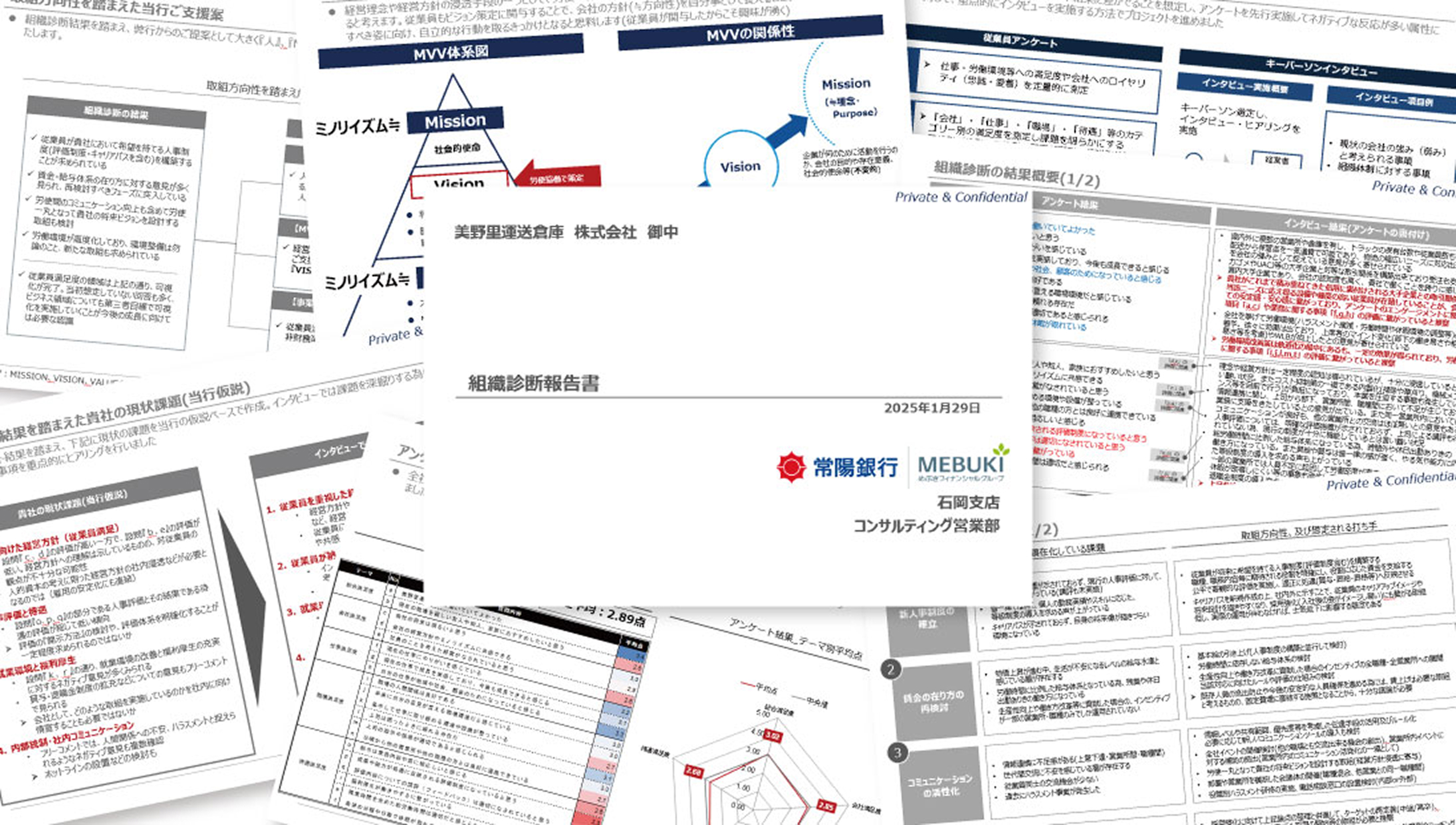 美野里運送倉庫株式会社様は、総合物流サービスという強みを最大限に発揮し続けるため、従業員満足度の向上と働きやすい職場づくりを軸に人材確保へ取り組んでいます。常陽銀行はその歩みに伴走し、組織体制の強化や非金融ソリューションの提供などを通じて、地域とともに持続的成長を目指す美野里運送倉庫様の真のパートナーとして、これからも共に歩み、その実現に全力を尽くしてまいります。