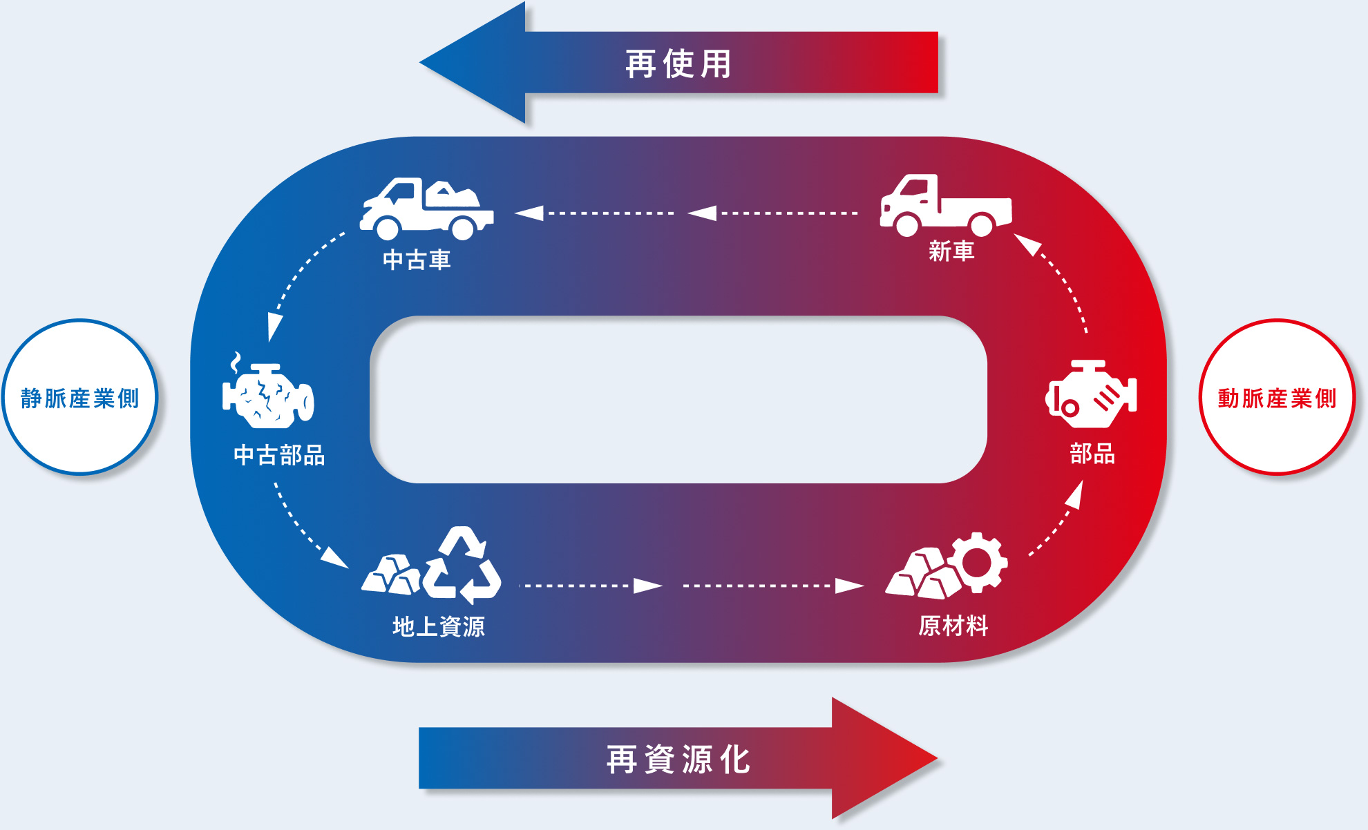 島氏 : あらゆる業界に当てはまることではありますが、特に自動車業界では大量生産・大量消費の時代が長く続いてきました。そのため業界では新たな製品を作り出す「動脈産業」が発展してきたのですが、近年は環境への影響や資源の問題からリサイクルなどの「静脈産業」を伸ばしていこうと大きく変化している状況にあります。