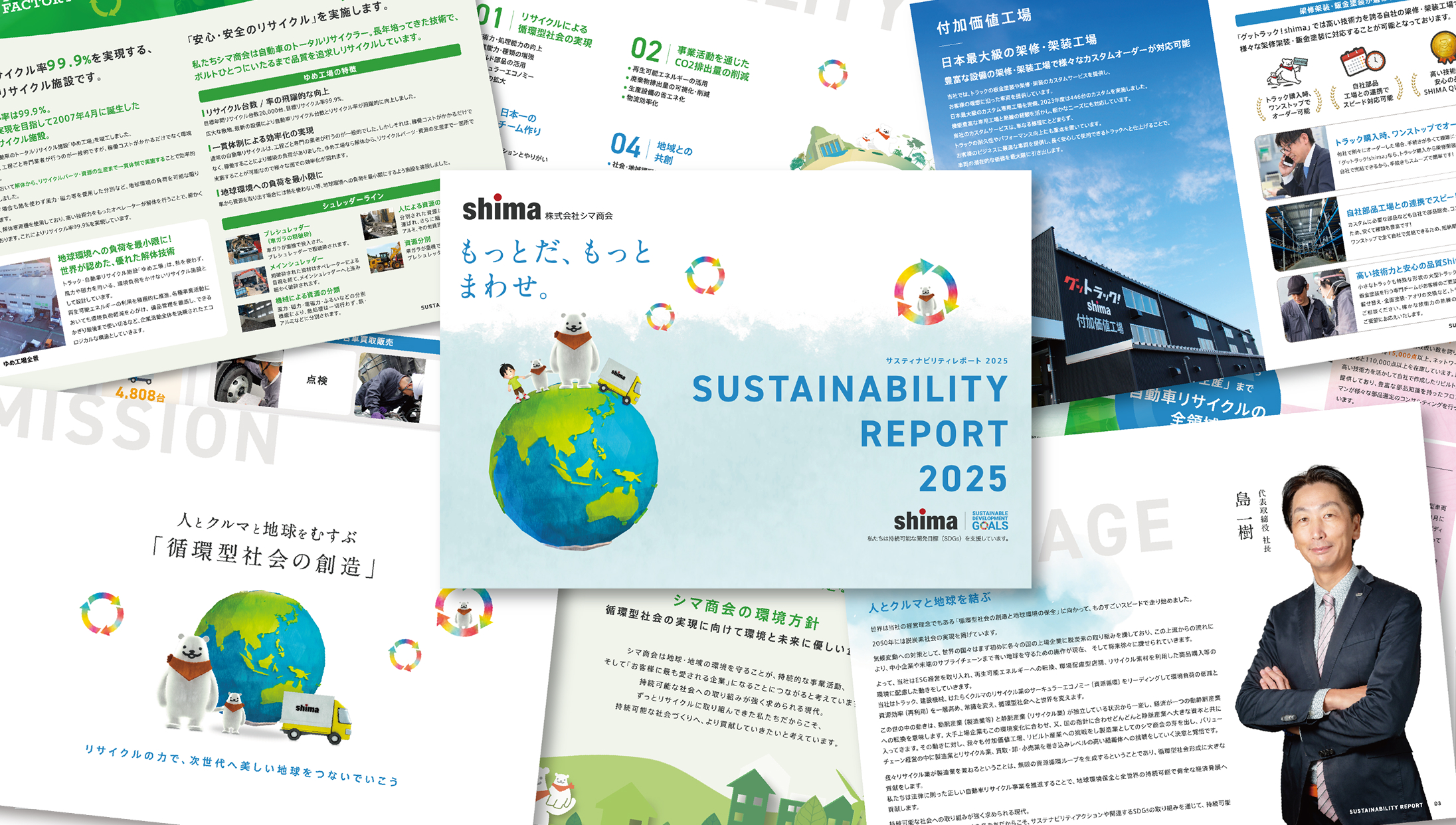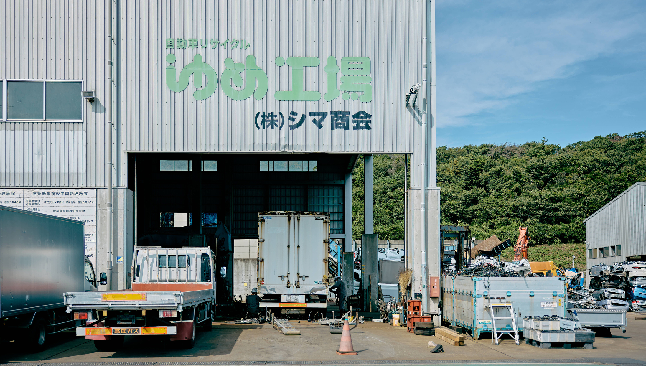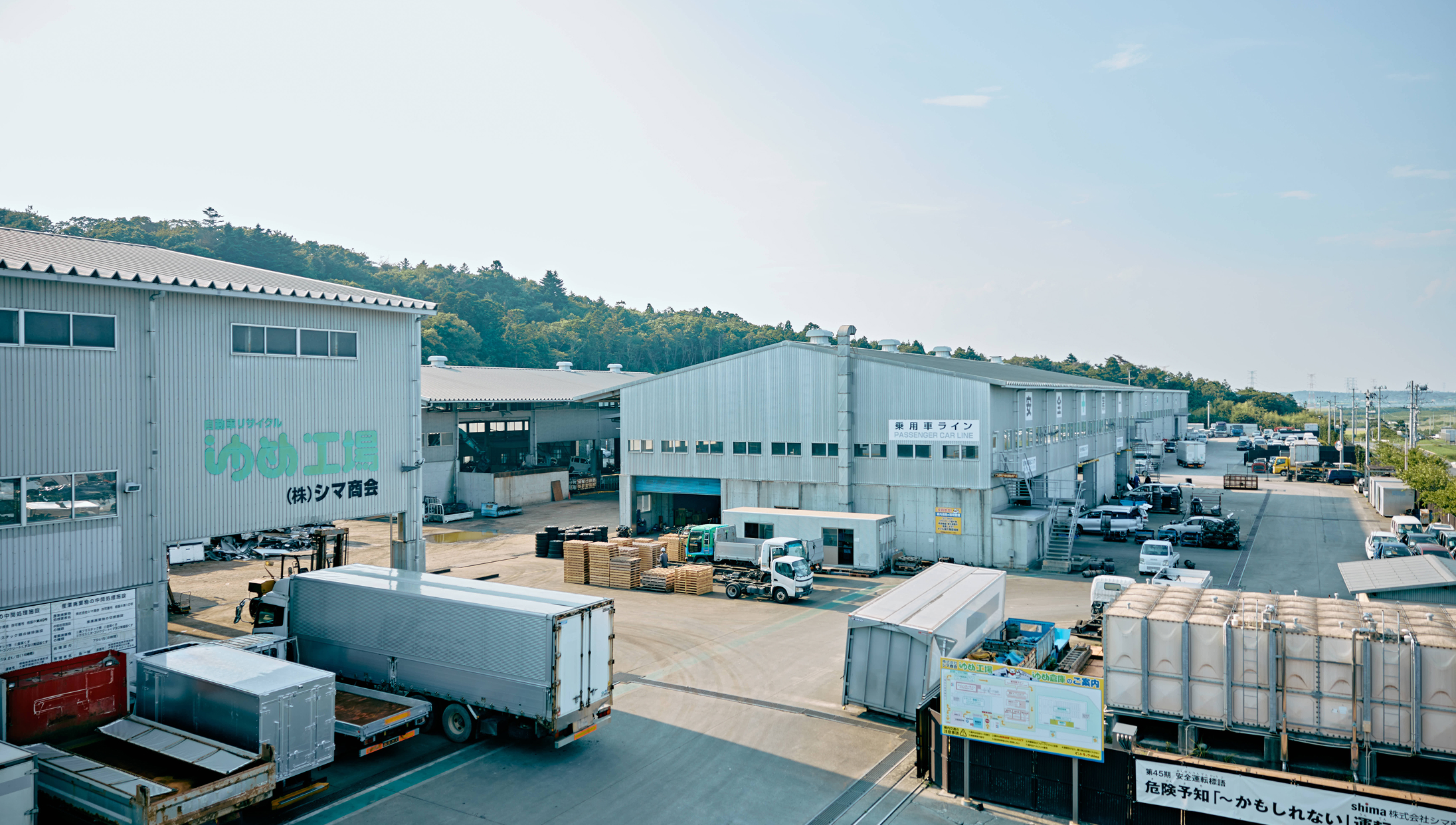 島氏 : 2007年には南相馬市内にトータルリサイクル施設「ゆめ工場」を竣工し、解体からリサイクルパーツ・資源の生産までを一貫して手がけることが可能に。全国に展開する中古トラック販売店「グットラック!shima」の強みに加え、クルマに特化した一気通貫のサービス体制を確立しました。2023年にはトラックの架修架装・板金塗装を行う「グットラックshima付加価値工場」が完成し、いまある車輌の価値を引き出す事業も強化しています。