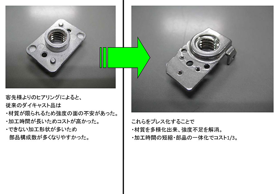 [提案名]ダイキャスト品をプレス化で強度up・部品構成数削減・ コスト低減 | ||||||||||