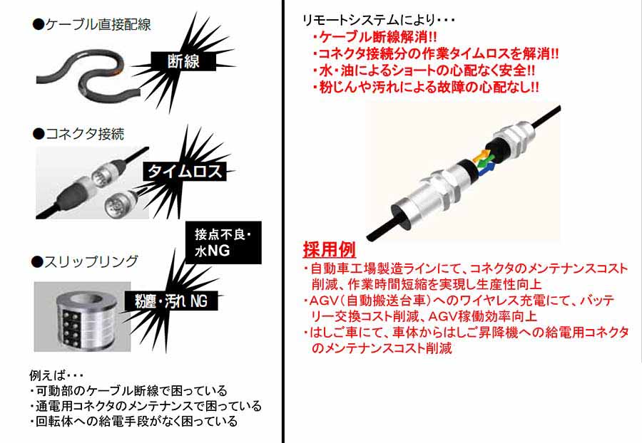 [提案名]弊社のリモートシステムは、ワイヤレスで電源供給・ 信号伝送が可能です!! | ||||||||||