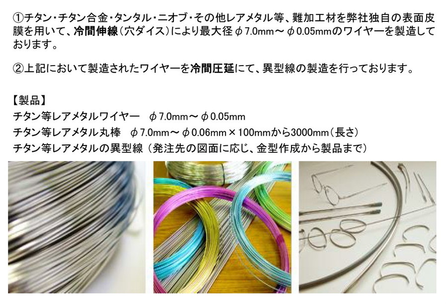 | チタン・レアメタルの伸線、 圧延技術No.1 |