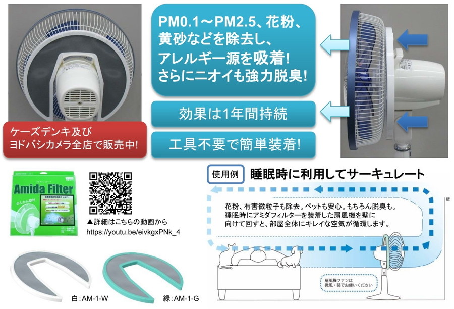 ●扇風機装着用脱臭フィルターは世界初で日本国内特許を申請し、海外でも申請中です。 |