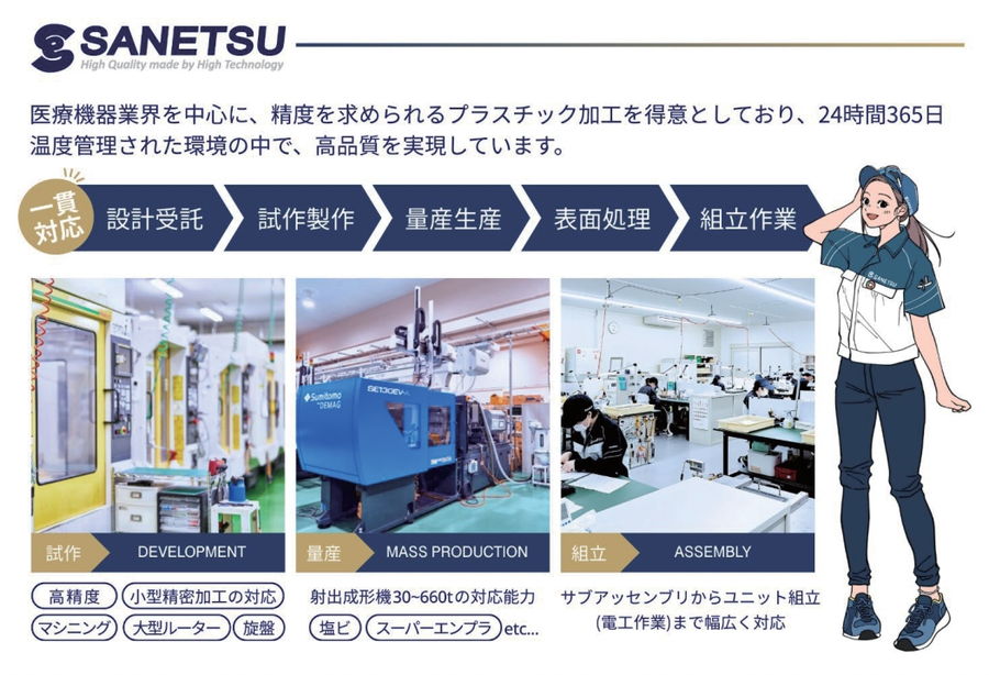 | 主要設備 | マシニングセンタ、複合旋盤、射出成形機 |