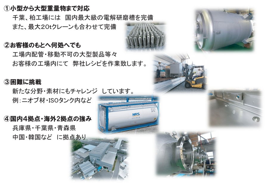 | 主要設備 | 国内最大級の電解研磨槽等 |