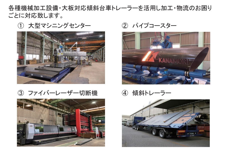 主要設備 大型マシニングセンター・縦横フライス機・ファイバーレーザー切断機・パイプコースター・各種切断機・ベンディングロール機 経営理念 『 世のため、人のため 』 |