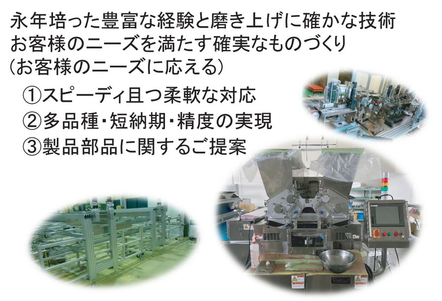 | 主要製品 | 精密加工部品・設計・組立・据付工事 |