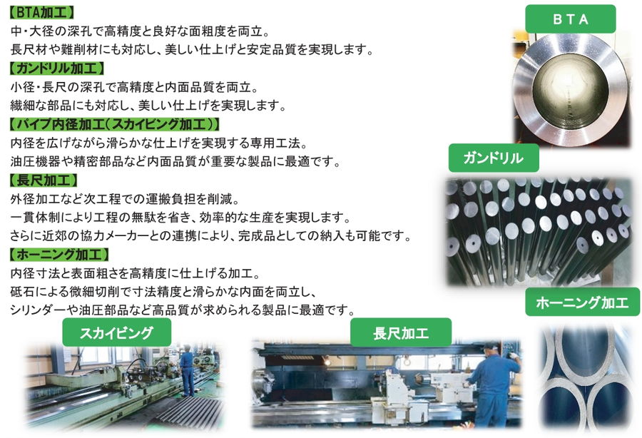 | 主要製品 | 深孔明け加工、パイプ内径加工 |