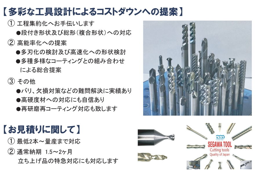 | 主要製品 | エンドミル、ドリル、リーマ、特殊バイト |