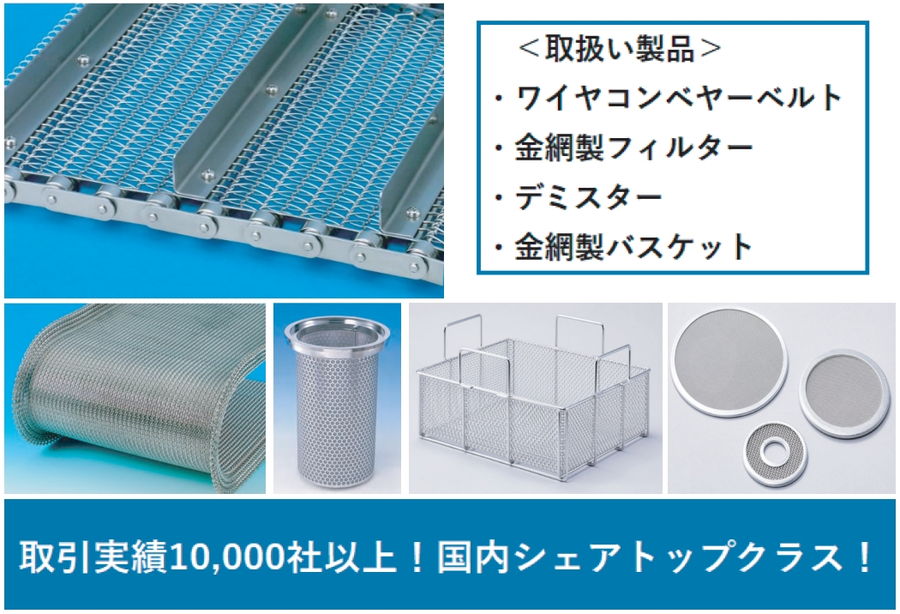 | 主要製品 | ワイヤコンベヤーベルト、金網製フィルター 等 |