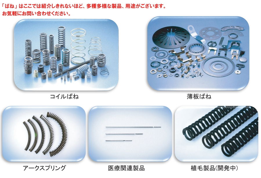 | 主要製品 | ダンパー及びバルブスプリング、薄板ばね |