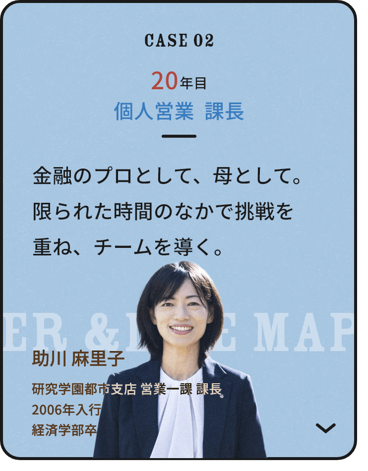 ここでは、3人の行員が歩んできたキャリアとライフの軌跡をご紹介します。